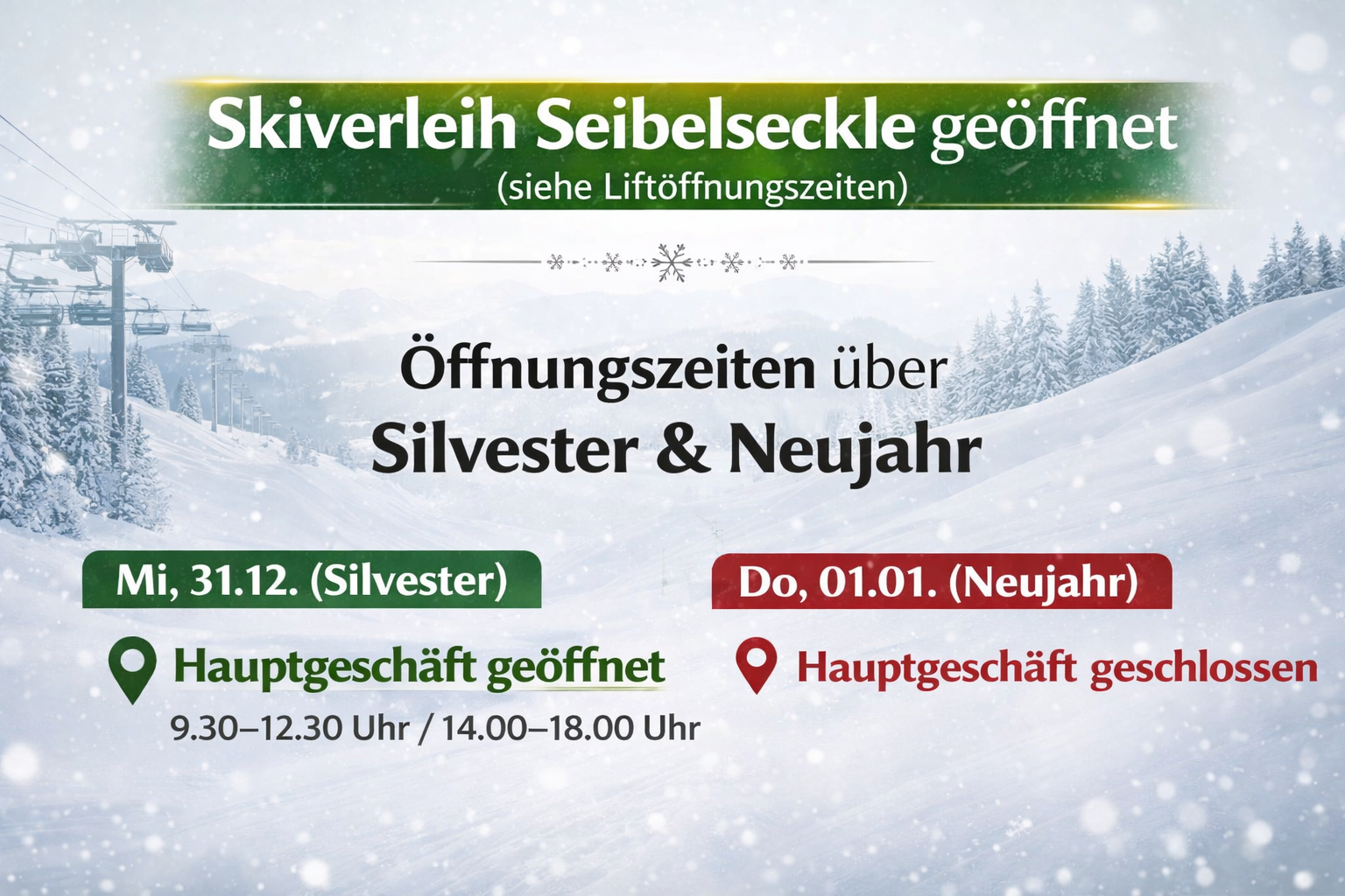 Öffnungszeiten Sportgeschäft siehe oben, das Lifthisli ist Mittwoch-Sonntag von 11-19 Uhr geöffnet!